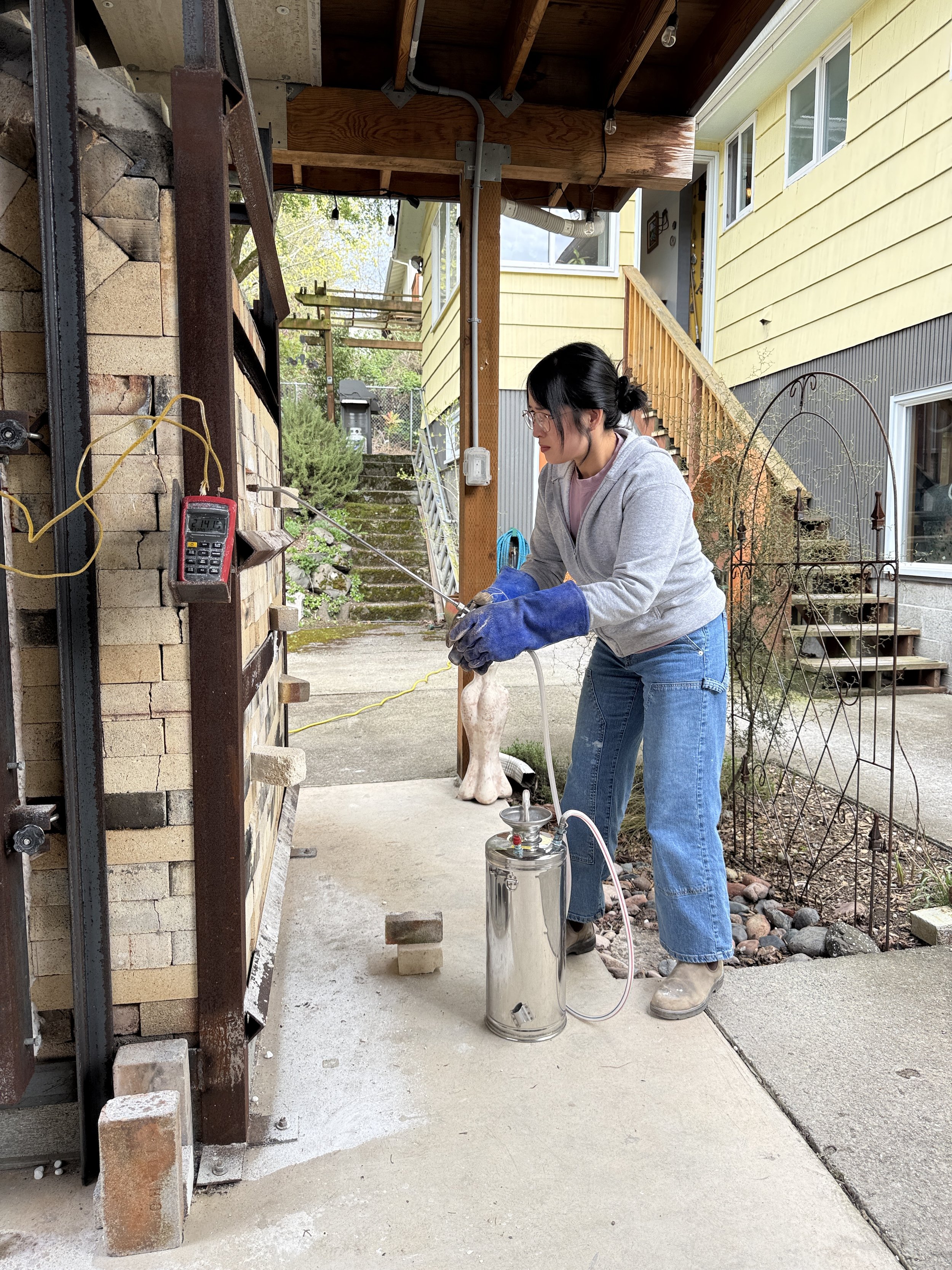 Cone 5 bending and soda introduction starting at 3:30pm with Steph, Dax, and me.4:30pm -2170ºF Top/ 2152ºF Bottom, Gas 3# both burners, damper at 4.5”, air medium